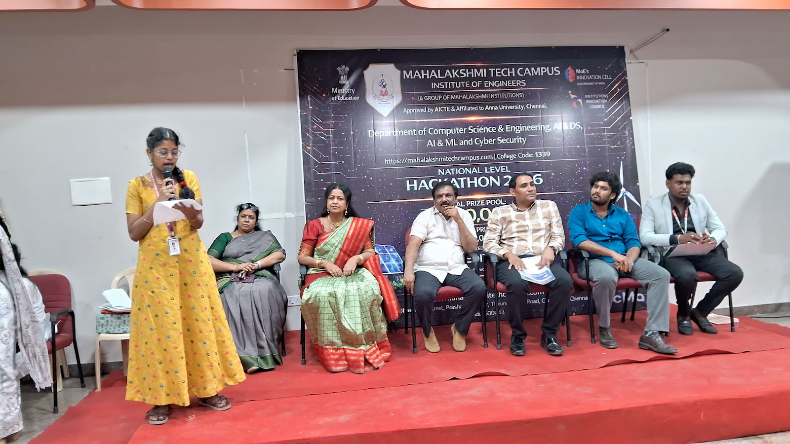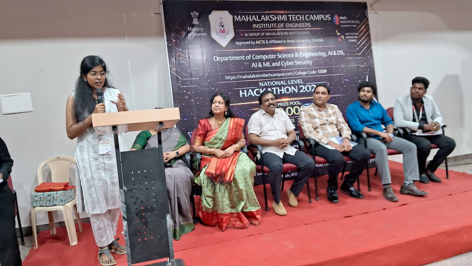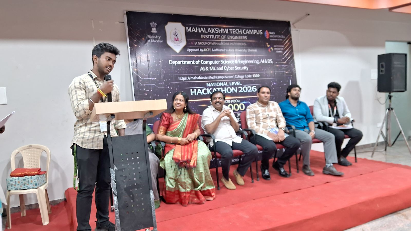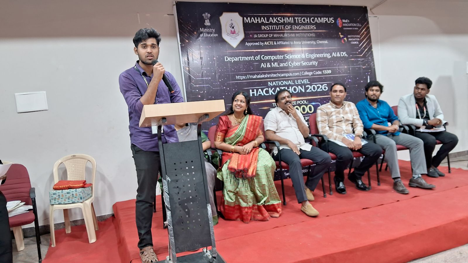 The Valedictory Function of the GREENVERSE National Level Hackathon 2026 was conducted in a grand manner at Mahalakshmi Tech Campus, Chrompet. The event celebrated innovation, creativity, and collaborative problem-solving among young engineering students.Chief Guest Address