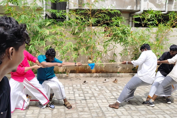 The highlights of the programme included the display of Bharathiyar’s books and traditional artefacts, a traditional bow (villu) display, snake and ladder concept presentation, silambam performance, traditional games like bambaram and pallankuzhi, Bharathiyar songs, tug of war, poetry recitations, speeches on the greatness of Tamil, energetic dance performances by boys, Oyilattam by girls, and a lively staff kummi.